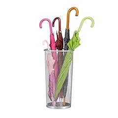 Relaxdays Schirmständer Metall, runder Schirmhalter aus Korbgeflecht, Stockhalter universal, 26 cm Ø, 50 cm hoch, silber