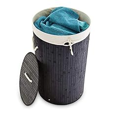 Relaxdays Wäschekorb Bambus, faltbare Wäschetonne mit Deckel, Volumen 70 l, Wäschesack Baumwolle, rund Ø 41 cm, schwarz