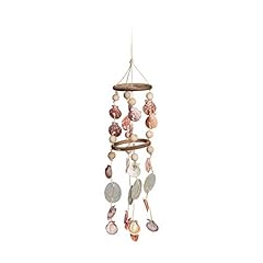 Relaxdays Windspiel mit Muscheln, maritimes Holz Klangspiel für Balkon, Garten, Strand-Deko, Capiz Mobile, 75 cm, natur