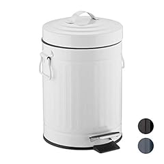 Relaxdays Treteimer Retro 3L, Inneneimer aus Kunststoff, Edelstahl Tretmülleimer, Bad und Küche, Kosmetikeimer, weiß, 26 x 18 x 23 cm