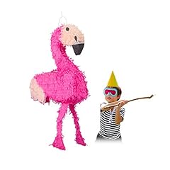 Relaxdays Pinata Flamingo, zum Aufhängen, Kinder, Mädchen, Geburtstag, zum Befüllen, HxBxT: 80 x 40 x 14 cm, rosa-pink