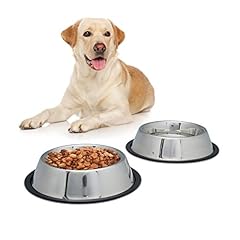 Relaxdays 10023458_59 2er Napfset Hund, Hundenapf für Wasser, Futternapf, rutschfest, rostfrei, Edelstahlnapf Größe L, 0.75 l, Silber