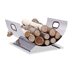 Relaxdays Kaminholzkorb Edelstahl, Feuerholzkorb modern, Kaminholzschale Metall, Holzlege, HxBxT 19 x 37 x 33 cm, silber