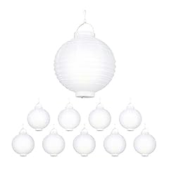Relaxdays LED Lampions weiß, 10 Stück, batteriebetrieben, Draußen & Drinnen, zum Aufhängen, Papierlaterne, Ø 20cm, white