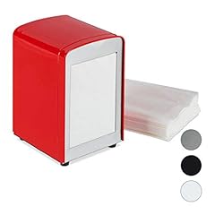 Relaxdays Serviettenspender Retro, Metall, kleine Serviettenhalter für Eisdiele, Café, Bistro, HBT: 15x9,5x11, rot
