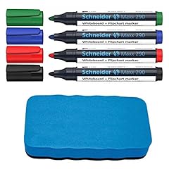 Schneider Maxx 290 Marker (für Whiteboards und Flipcharts, Rundspitze 2-3 mm Strichstärke) Etui mit 4 Farben (4er Marker inkl. Whiteboardschwamm)