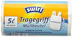 Swirl Tragegriff-Müllbeutel, 5 Liter, Antibakteriell, 4 Rollen mit je 40 Beuteln, Weiß
