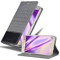 Cadorabo Hülle für Samsung Galaxy S7 - Hülle in GRAU SCHWARZ - Handyhülle mit Standfunktion und Kartenfach im Stoff Design - Case Cover Schutzhülle Etui Tasche Book