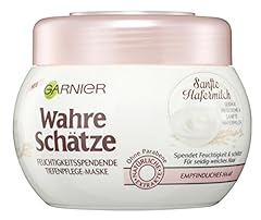 Garnier Wahre Schätze Feuchtigkeitsspendende Tiefenpflege-Maske Sanfte Hafermilch, pflegt, schützt und beruhigt, für empfindliches Haar, 3er-Pack (3 x 300 ml)