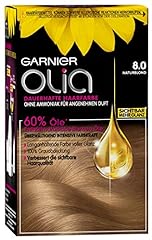 Garnier Olia Haar Coloration Blond 8.0 / Färbung für Haare enthält 60% Blumen-Öle für intensive Farbkraft - Ohne Ammoniak - 3 x 1 Stück