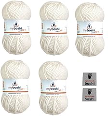 Myboshi No. 1, Merino-Wolle Mix im 5er Set Vorteilspack, Weiß (Fb.-Nr.: 191) Handstrickgarn, Häkelgarn, Mützenwolle zum Häkeln und Stricken, inkl. 2 myboshi Label