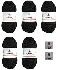 Myboshi No. 1, Merino-Wolle Mix im 5er Set Vorteilspack, Schwarz (Fb.-Nr.: 196) Handstrickgarn, Häkelgarn, Mützenwolle zum Häkeln und Stricken, inkl. 2 myboshi Label