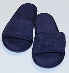 hochwertige Frottee Slipper blau mit offenen Zehen, Classic Terry Slipper / Schuhe / Hausschuhe / Pantoletten / Hotelslipper / Badeschuhe, Gr. 42 - 46