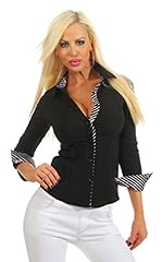 Fashion4Young 11029 Damen Kurzarm Businessbluse Bluse Hemd Business Hemdbluse elastischem Stretch