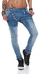 Fashion4Young Damen Jeans Röhrenjeans Haremshose Hüftjeans Baggy Haremsjeans Boyfriend