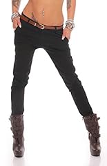 Fashion4Young 10777 Damen Skinny Chino Pant Hautenge Treggings Stretch-Stoff Damenhose mit Gürtel (M=38, Schwarz)