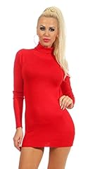 Fashion4Young K927 Damen Feinstrick Pullover Strickkleid Strickpullover Rollkragen Minikleid Longpullover