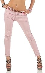 Fashion4Young Damen Skinny Chino Pant Hautenge Treggings Stretch-Stoff Damenhose mit Gürtel (M=38, 11146-altrosa)
