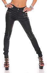 Fashion4Young 10782 Röhrenhose Slimline mit Reißverschluss im Leder-Look I Lederimitat Leder Hose Damenhose Wetlook Hose