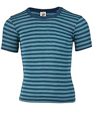 Engel, Kinderunterhemd langarm, Wolle Seide, Ringel, Gr. 92 - 164, 3 Farben (104, Light Ocean/Eisvogel)