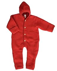 Engel-Natur Baby Overall mit Kapuze aus Bio Schurwoll-Fleece, Rot Melange, Gr. 62/68