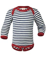 Engel Baby/Kinder Body Langarm gestreift Bio-Wolle/Seide, Gletscher/Natur, 86/92