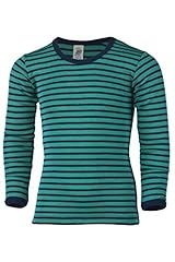 Engel, Kinderunterhemd Langarm, Wolle Seide, Ringel, Gr. 92-164, 3 Farben (116, Eisvogel/Marine)