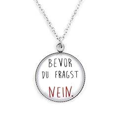 SCHMUCKZUCKER Damen Kette mit Anhänger Motiv Bevor Du Fragst Nein Edelstahl Silber Weiß (Großer Anhänger (25mm) - Kurze Kette (45cm))