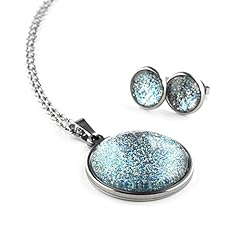 SCHMUCKZUCKER Damen 2er Glitzer Schmuck-Set Universum Edelstahl Kette mit Anhänger und Ohrstecker Silber Blau