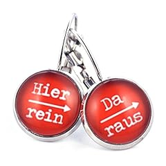SCHMUCKZUCKER Damen Ohrhänger Spruch Hier rein, Da raus witzige Ohrringe silber-farben (rot)