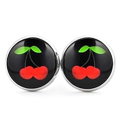 SCHMUCKZUCKER Damen Mädchen Ohrstecker Motiv Rockabilly Kirsche Edelstahl Ohrringe Silber Schwarz Rot Rund (14mm)