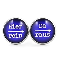 SCHMUCKZUCKER Damen Herren Unisex Ohrstecker mit Spruch Hier rein - da raus Lustige Edelstahl Ohrringe Silber Dunkelblau 14mm