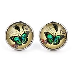 SCHMUCKZUCKER Damen Ohrstecker Motiv Ornament Schmetterling Vintage Modeschmuck Ohrringe silber-farben grün 14mm