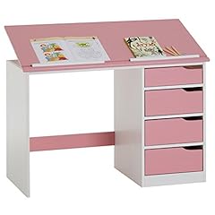 IDIMEX Kinderschreibtisch Emma, Jugendschreibtisch Schülerschreibtisch, Kiefer massiv, weiß/rosa, Platte neigungsverstellbar