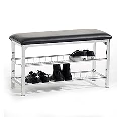 Sitzbank Schuhbank Garderobenbank INA, mit 2 Schuhregalfächern, Sitzfläche gepolstert, Bezug Kunstleder schwarz