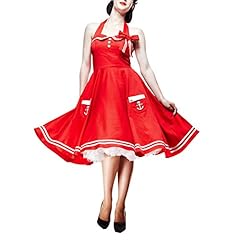 Rockabilly 50ziger Jahre Kleid Motley im Matrosenstil von Hell Bunny London mit Neckholdern rot