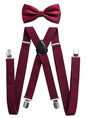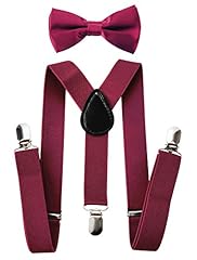 axy Hochwertige Kinder Hosenträger-Y Form mit Fliege- 3 Clips EXTRA STARK-Uni Farben (Weinrot)