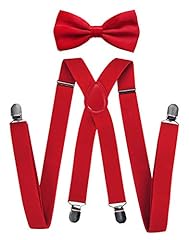 axy® Hochwertige Kinder Hosenträger-Y Form mit Fliege- 3 Clips EXTRA STARK-Uni Farben (Rot)