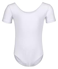 tanzmuster Kinder Ballettanzug Sally mit kurzen Ärmeln und rundem Ausschnitt - Mädchen Ballett Trikot in weiß, Größe:104/110