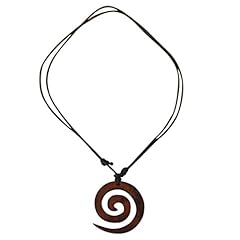 Chic-Net Holz Kette schwarz Baumwolle Spirale Holzanhänger braun Sonoholz 4cm Ø Halskette | Handarbeit Damen Herren Männer Hals Schmuck verstellbare kurze lange Holzkette Anhänger rund Hippie Boho