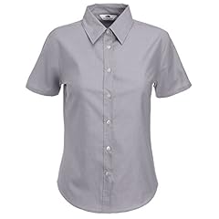 Fruite of the Loom Damen Lady Fit Kurzarm Oxford Bluse, vers.Farben M,Oxford Grau