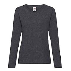 Fruit of the Loom Lady-Fit Valueweight Damen T-Shirt, Langarm (XL) (Dunkelgrau Meliert)