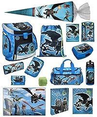 Familando Scooli Schulranzen-Set 19 TLG. Dragons - Drachenreiter von Berg - mit Federmappe, Sporttasche, Schultüte 85cm und Regenschutz Drache Ohnezahn
