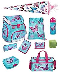 Scooli Butterfly Mädchen Schulranzen-Set 10tlg. Campus Fit mit Dose/Flasche Sporttasche und Schultüte 85cm Schmetterling und Blumen türkis