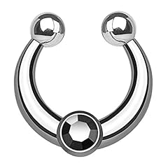 Autiga Nasenpiercing Nasenring Fake Piercing Septum Chirurgenstahl mit Wechselkristall Silber