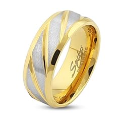 Autiga Ring Edelstahl Herren Damen Diagonal Streifen Partnerring Ehering Gold Schwarz Bandring Gold 62 - Ø 19,76 mm 8 mm