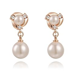 Perlen Ohrclips Fake Ohringe Pearl Perle Damen Clip On Non-Piercing vergoldet rosègold-weiß
