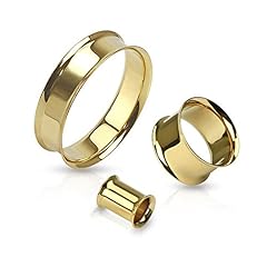 Flesh Tunnel Plug Edelstahl Ohr Piercing Ohrstecker Double Flared Hollow gold 14 mm