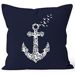 Autiga Zauberhafter Kissenbezug Vogel Anker Anchor Birds Kissen-Hülle Deko-Kissen 40x40 Baumwolle Navy 40cm x 40cm