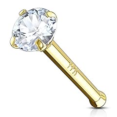 Autiga® Nasen-Piercing 14 Karat 585 Echtgold Stecker Nasenstecker Stift Zirkonia Kristall Gold 0,8 mm